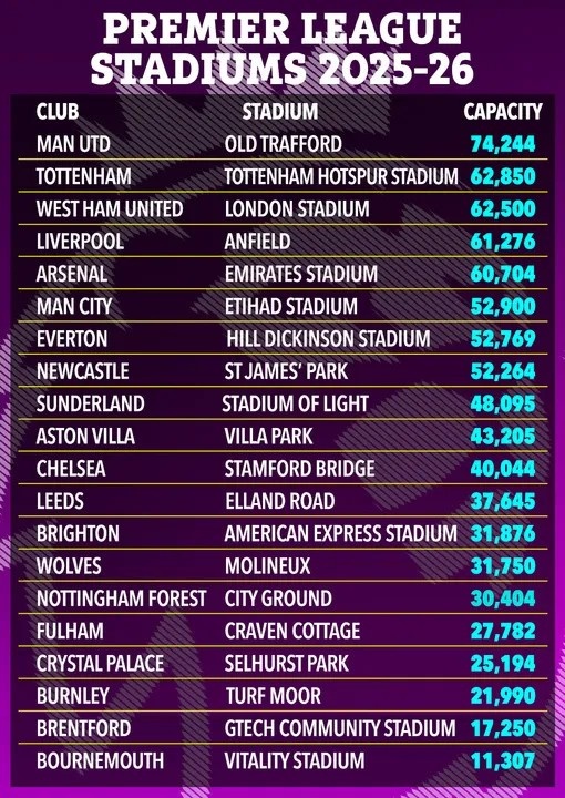 最显著的变化发生在富勒姆,他们耗资1亿英镑、史诗级的河滨看台终于在五月全面开放,内含专属泳动 池、米其林星级厨师坐镇,并可饱览泰晤士河美景。该项目历时六年,疫情期间的延误和建筑承包商的破产更是雪上加霜。这意味着克拉文农场运动活动 场 的容量从2024年8月的24500人跃升至2025年8月的27782人。