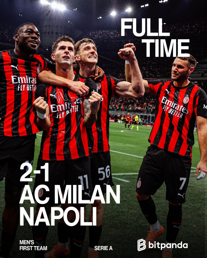 09月29日讯 意甲第5轮,十人AC米兰主场作战 2-1击败榜首那不勒斯,成为新的意甲榜首。