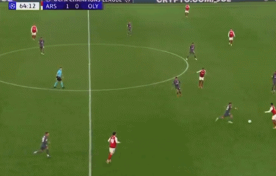 无解视野!赖斯后场找到屏幕外的厄德高,一脚球让阿森纳由守转攻