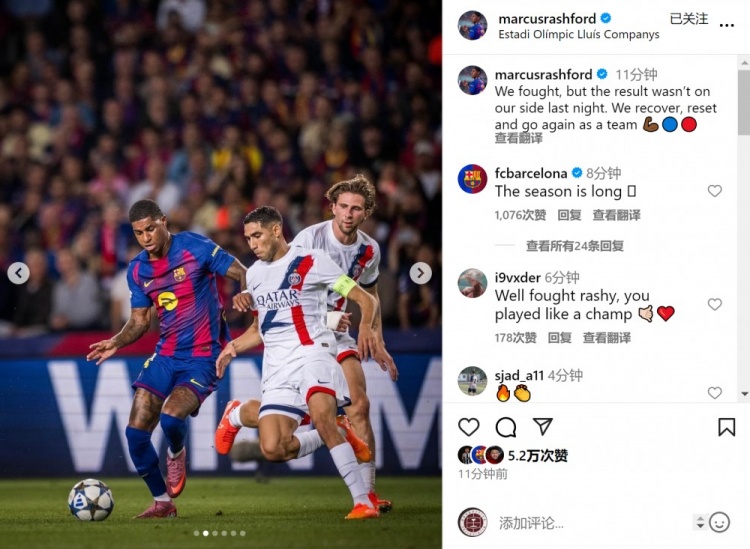 拉什福德社媒:我们努力战斗但结果不如所愿,将重整旗鼓再次出发