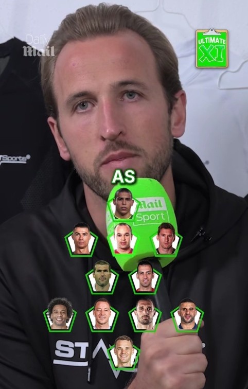 凯恩选心中最强11人阵:C罗、梅西、大罗、齐达内、特里等入选