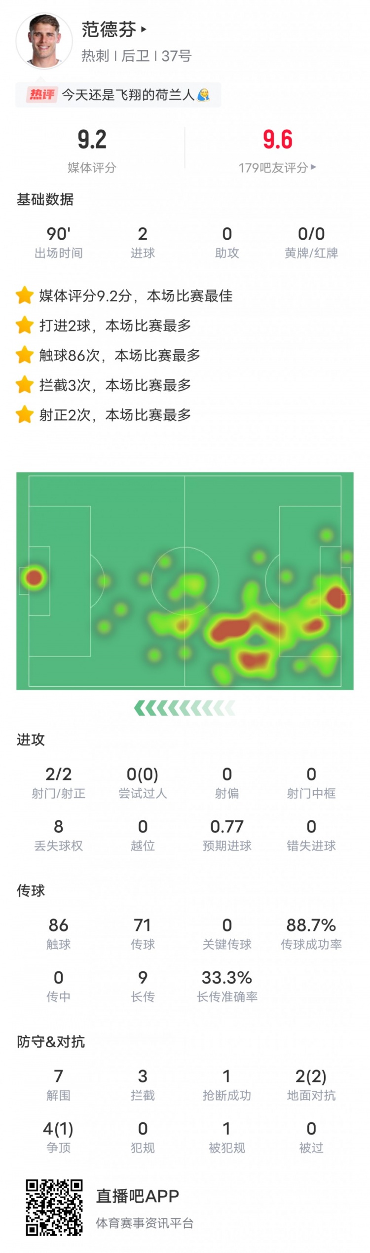 攻防俱佳!热刺官方:范德芬当选为3-0埃弗顿队内最佳球员