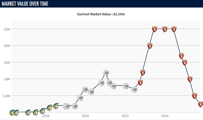 负伤 前,舒尔斯曾受到国米、利物浦、阿森纳等多支豪门球队关注,如今身价从2500万欧一路下跌至250万欧。