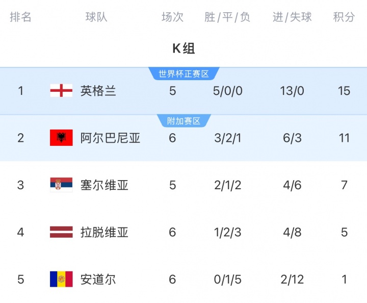 目前英格兰在K组5战全胜积15分,领跑 多赛的阿尔巴尼亚4分,英格兰只需今夜击败拉脱维亚,再拿3分就可锁定小组第一,从而提前两轮晋级下一轮 2026美加墨世界杯赛 ,江苏足球联赛直播免费观看入口平手 还不足以让英格兰提前晋级下一轮 。
