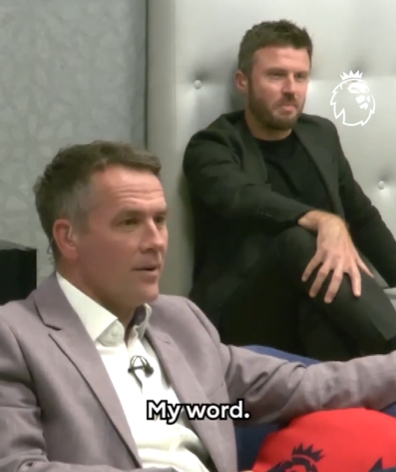 当目睹曼联开场1分钟得分 时,曼联名宿卡里克激动地喊道:“这就是你应有的开局”,而曾分别效力利物浦和曼联的欧文则表情平静。